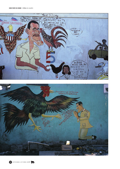 Reportage photo : Burning Man Loïc Vizzini, dont les photos prennent régulièrement place dans les pages noir et blanc du Tigre, présente ici son travail en couleur : un reportage sur le festival underground de musique Burning Man, qui se tient chaque été dans le désert du Nevada. On y croise le diable, les filles, le jaune fluo, l’exhibitionnisme, le sable, et toujours le vent. L’impubliable : Mai 68 Tous les magazines en parlent, Le Tigre est un magazine, donc Le Tigre doit en parler. C’est en partant de ce syllogisme que Le Tigre, déguisé en Mouton pour l’occasion, se penche enfin sur Mai 68... mais à sa sauce, au sens figuré et au sens propre : s’il est vrai que la cuisine reflète l’évolution des moeurs, voici une bonne occasion de se régaler. Les murs ont la parole : Haïti 1994 Mireille Nicolas s’était déjà penchée (Le Tigre vol.VIII ) sur les fresques populaires lumineuses peintes par le peuple haïtien pour célébrer l’élection du président Aristide, en 1991. Dans cette seconde livraison, elle commente les peintures murales de 1994 — lorsque, protégé par l’armée américaine, le président déchu regagnait son pays. Conjugaisons : Je-Tu-Il Florence Inoué, David Poullard et Xavier Rannou nous révèlent ici les possibilités insoupçonnées des tables de conjugaison. Rendant aux composants d’une expression figée leur liberté, ils conjuguent les verbes Rouler ma poule, Si te plaire, Non mais rêver ! ou encore Rimer à rien... Une magnifique lutte contre la langue de bois.