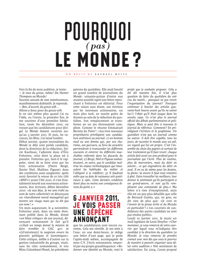 - « Pourquoi (pas) le Monde », récit de Raphaël Meltz.