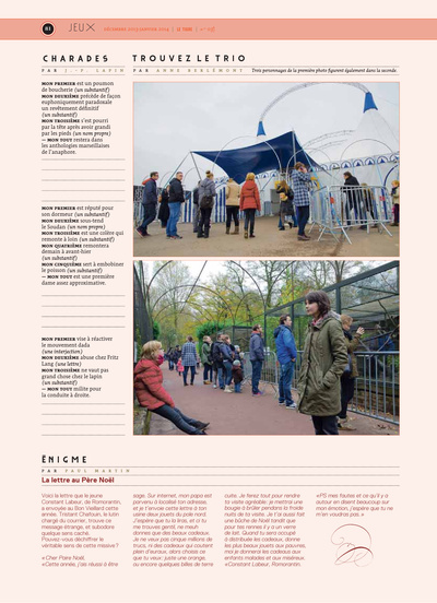 Numéro de décembre 2013/janvier 2014 du Tigre, magazine en couleurs de 84 pages, sans publicité.