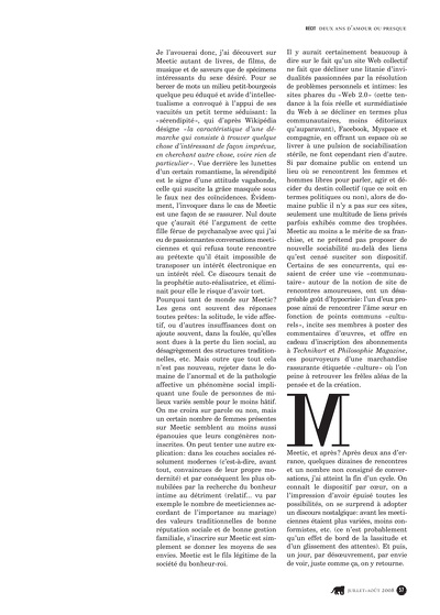 Date : juillet-août 2008. Couleur de couverture : pêche. / Graphisme : Lætitia Bianchi 104 pages couleur et N&B, dos carré, sans publicité. En kiosques, en librairies, et en vente à l’unité au prix de 6,80 euros. En vente au format électronique (PDF) au prix de 4,50 euros